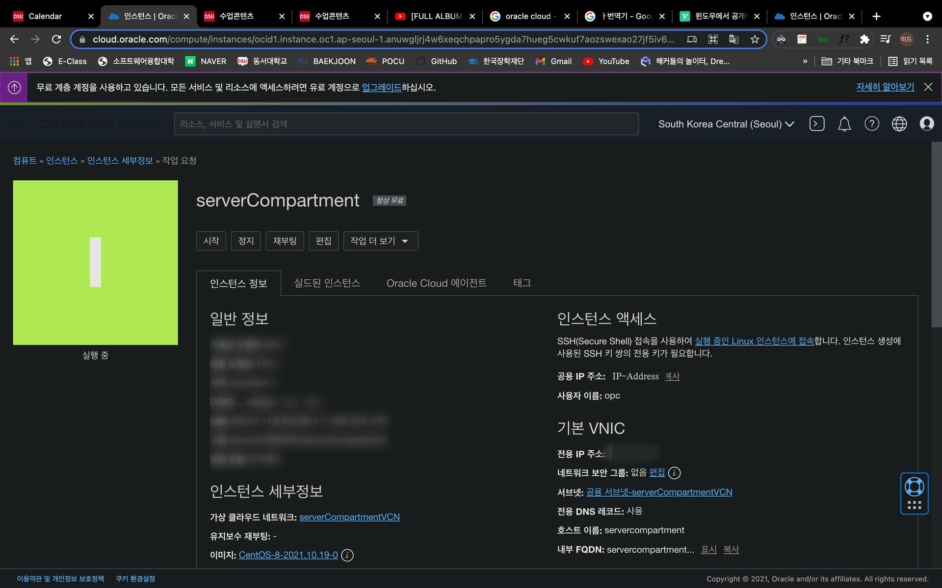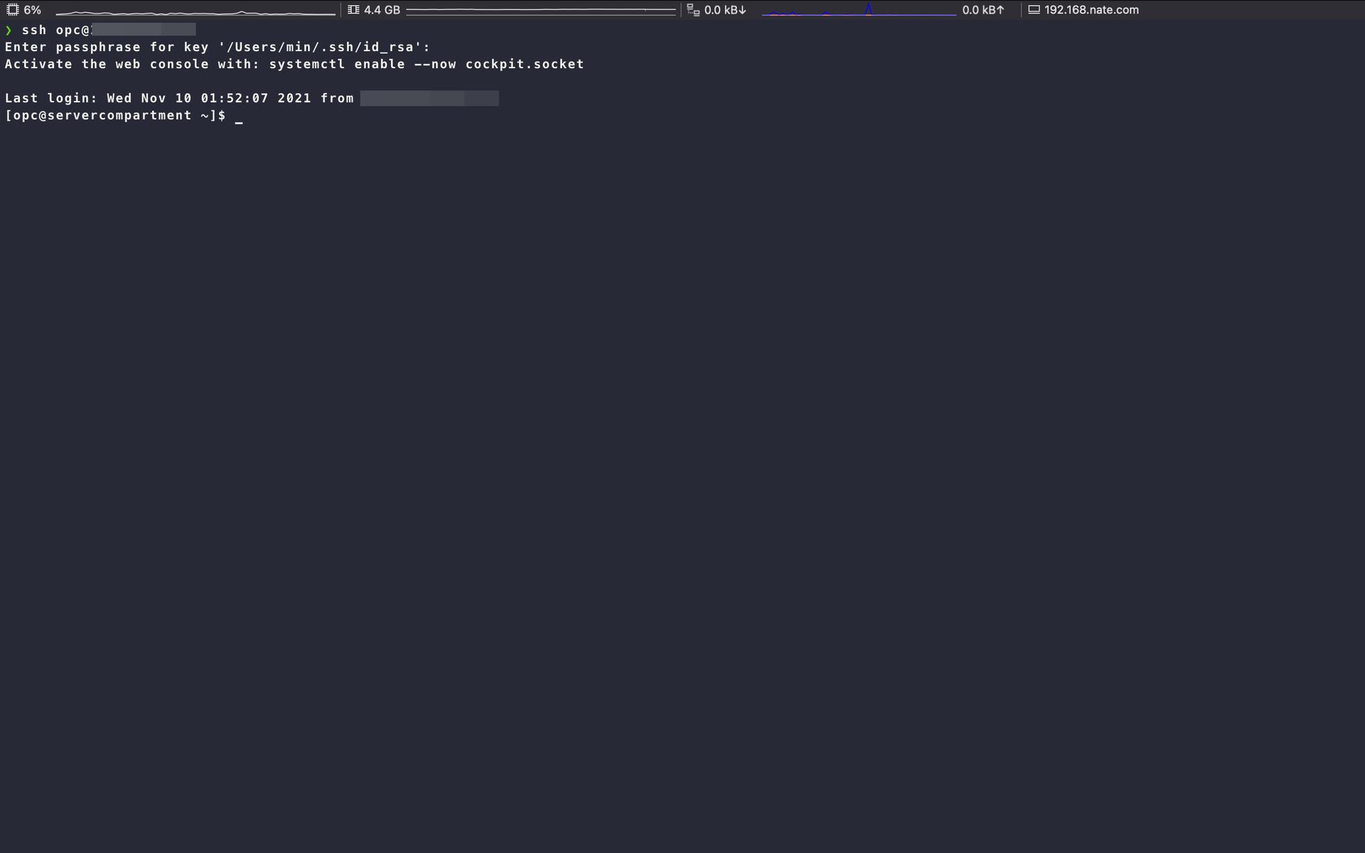 전용키방식 : ssh -i /전용키주소 opc@공용IP주소