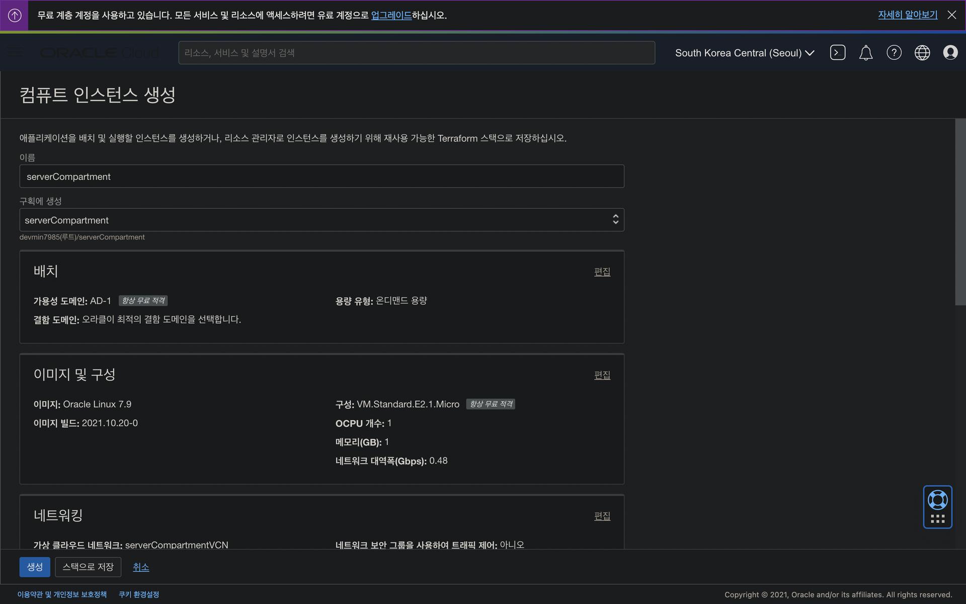 참고로 여기서 정한 이름은 이후 서버 측 root에서 opc@servercompartment같이 유저명에 사용됩니다.
