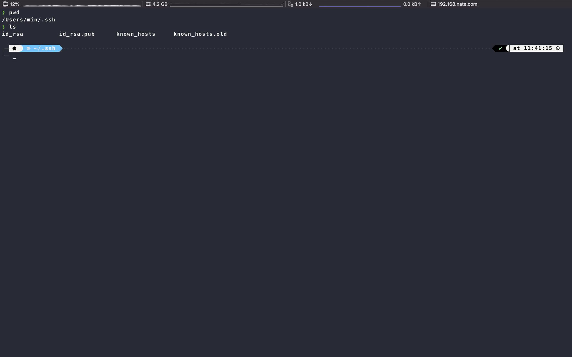 또한 실행한 후 첫 번째 출력 줄에 /User/min/.ssh/id_rsa와 같이./root(맥: User)/min(usdr name)/.ssh 에 진입하면 id_rsa.pub이 있을 것입니다.