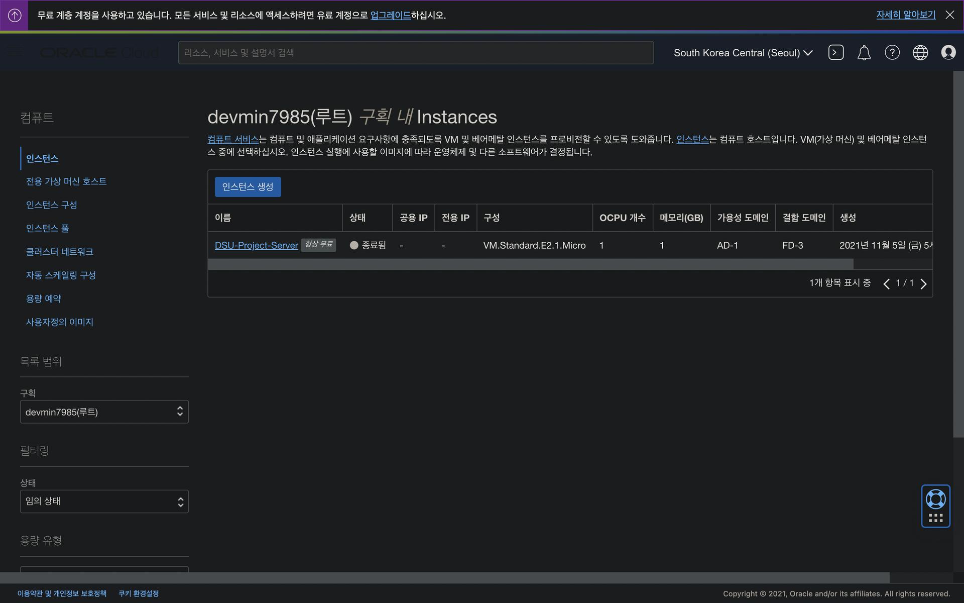 바로 시작하겠습니다! 오늘은 드디어 인스턴스를 생성해 보겠습니다.