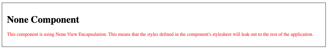 This component is using None View Encapsulation. This means that the