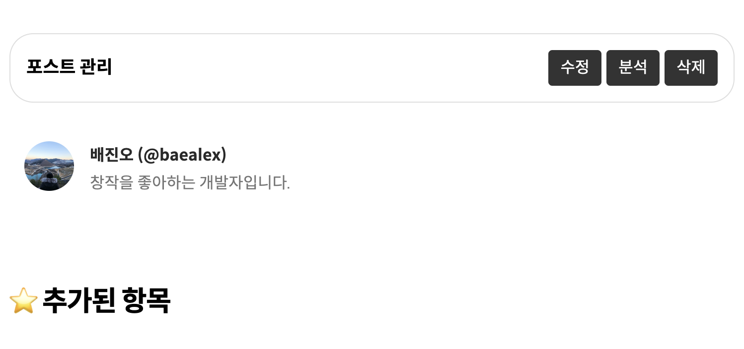 포스트 본문 상단에 포스트를 제어할 수 있는 버튼들이 분리되며 포스트 분석 버튼이 추가됩니다. 해당 버튼을 누르면 포스트 분석 페이지로 이동됩니다.