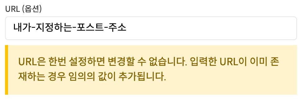 포스트의 URL을 사용자가 직접 지정할 수 있는 옵션을 추가하였습니다. URL에 대한 정책은 기존과 동일하게 처음 생성될 때 부여된 URL은 어떠한 방식으로도 수정할 수 없습니다.
