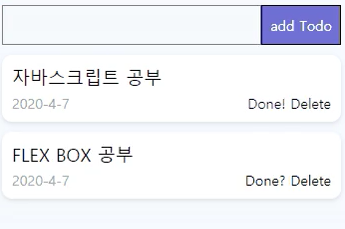 색상은 필자가 주로 사용하는 색상들#이며 항목을 작성하면 작성한 내용 아래에 생성된 날짜와 날짜와 같은 라인의 끝에는 Done 버튼과 Delete 버튼이 있어야 하는 레이아웃이다. 아래 코드가 나오는데 그냥 맛보기 코드임을 참고하시길 바란다.