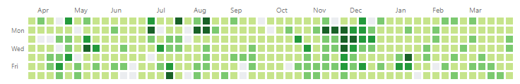 예전부터 만들고 싶었던 기능인데 어떻게 만드는게 효율적인지 디자인을 어떻게 해야할지 감이 안온다. 유저 활동탭(포스트, 시리즈, 스토리, 추천, 댓글)에 있는 기록으로 위와같은 그레스를 만들게 될 것인데 DB에서 정말 저 많은 데이터를 다 꺼네오는게 맞는걸까 싶기도하고...