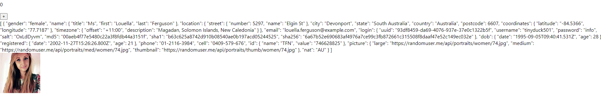 다음과 같이 버튼을 누를 때마다 랜덤 유저들의 정보와 사진이 리스트에 추가된다.