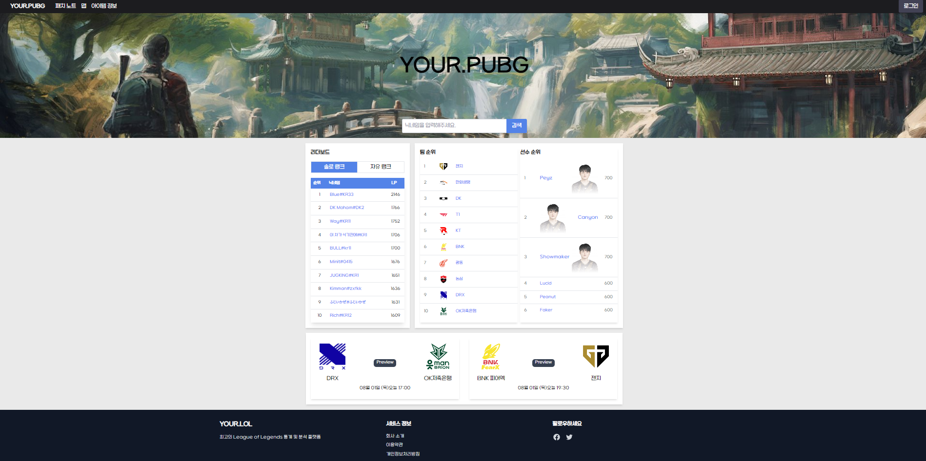 전체를 담기 위해 배율 조정을 했다(50%) 실제로는 더 크다. 앞으로 추가 할 것은 서비스 로고 작업을 할 건데 그게 저 가운데 YOUR.LOL 부분을 대체 할 것이고 배경 사진도 lol에 맞는 동적인 이미지를 추가 할 계획이다.