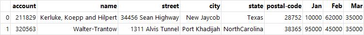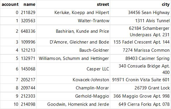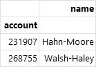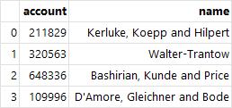 df[["account", "name"]].head(4) # 선택할 열이 여러 개일 경우 데이터프레임으로 묶는다.