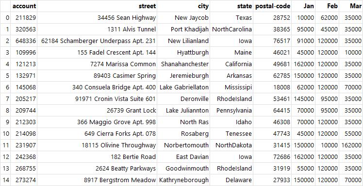 del df["account"] # 인덱스를 제외한 account열 삭제
