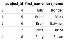 raw_data, columns=['subject_id', 'first_name', 'last_name'])