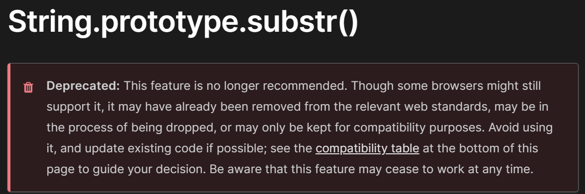 • 다른 풀이로는 substring()을 이용하여 문제 풀이를 진행하였다. substr() 함수와 사용하는 방법이 같은데, substr() 함수가 deprecated 되면서 사용 방식이 같은 substring()을 이용해주었다.
