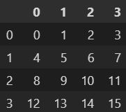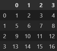df = pd.DataFrame(np.arange(1, 17).reshape(4, 4)) df