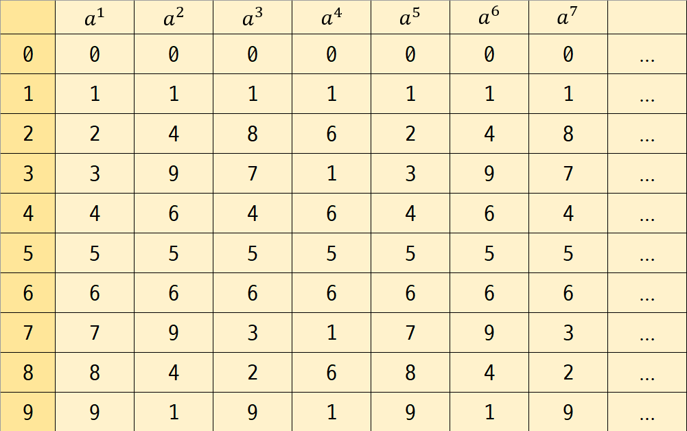 - a값 끝자리가 2, 3, 7, 8의 경우 a가 2인 경우 4, 9, 9, 4, a가 3인 경우 8, 7, 3, 2,