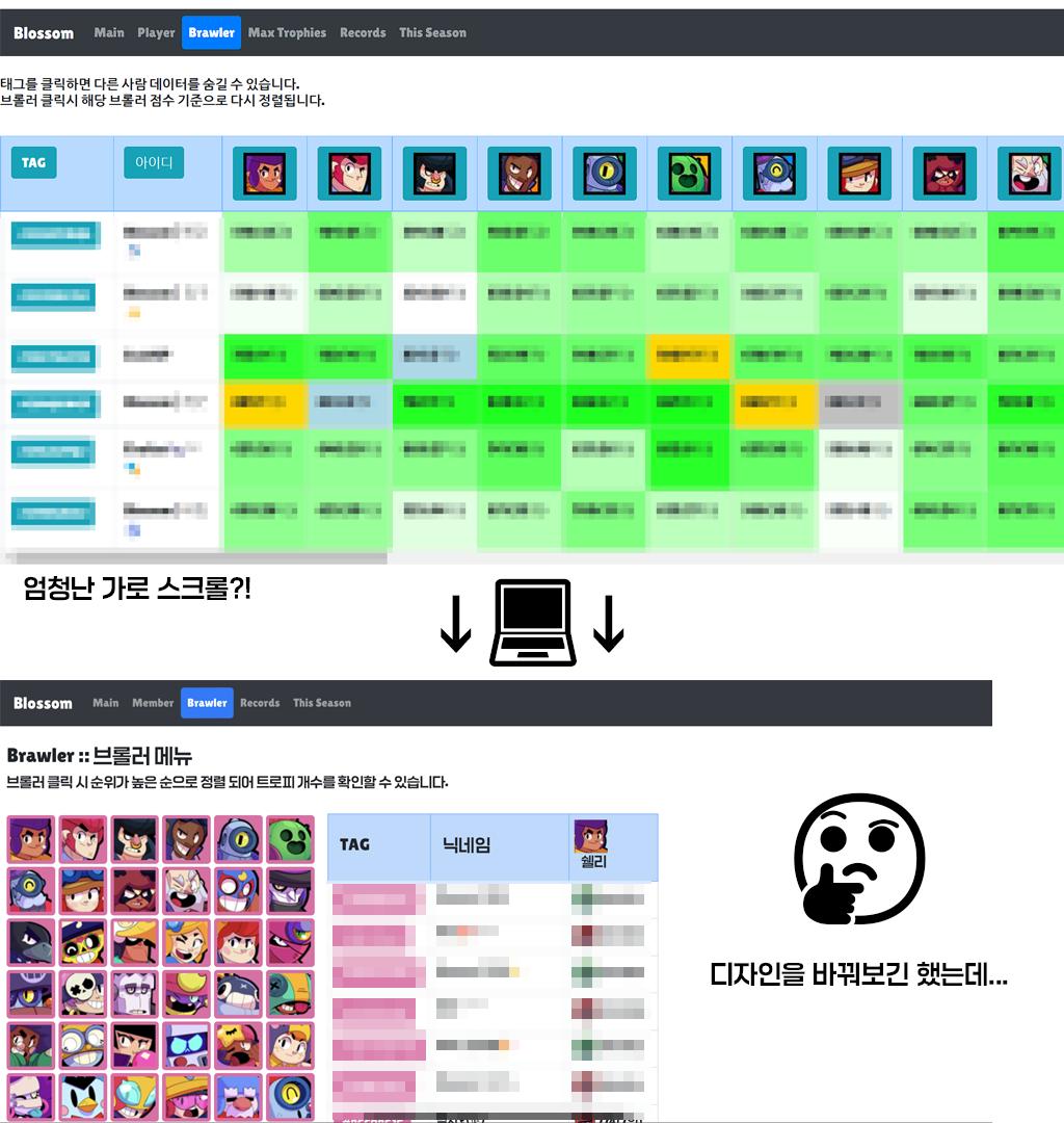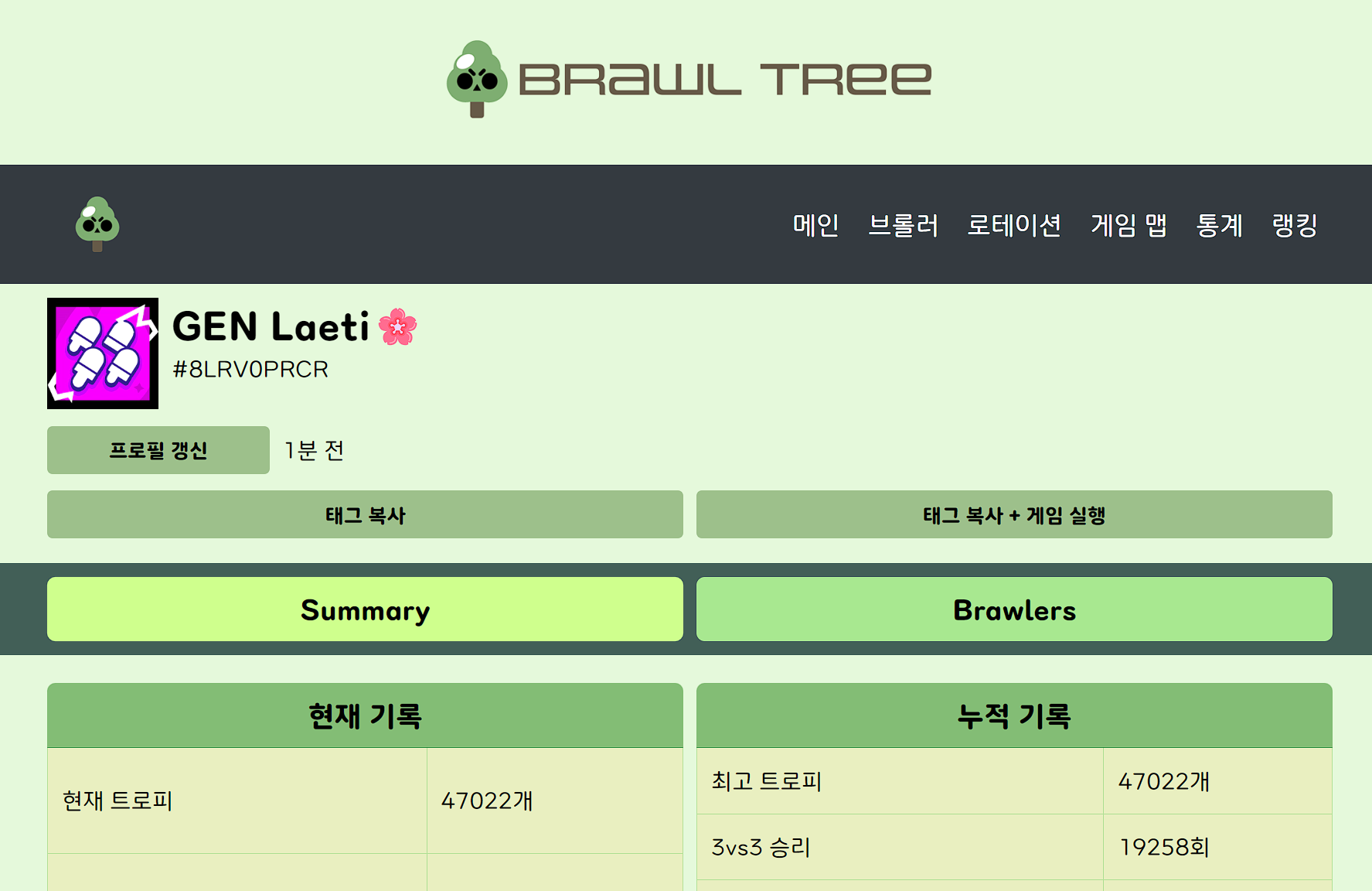 시리즈에서 다룰 내용 중 하나인 브롤스타즈 전적 사이트인 Blossom Stats와 Brawl Tree는 내가 헤딩하면서 만들어가고 있는 첫 개인 프로젝트이다.
