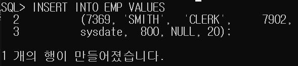 INSERT INTO DEPT VALUES (20,'RESEARCH','DALLAS');