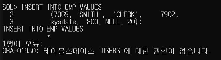 [3] 정리킴 - [SQL 오류] ORA-01950 : 테이블스페이스 'USERS'에 대한 권한이 없습니다 (tistory.com)
