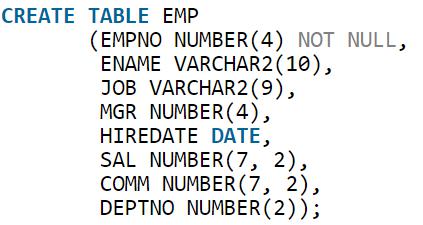 (DEPTNO NUMBER(2) CONSTRAINT PK_DEPT PRIMARY KEY,