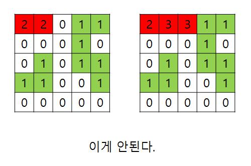 그래서 방문한 위치 2칸을 한번에 저장해야한다. 그리고 2칸이 완전히 겹치는 경우 재방문하지 않는다. 만약 재방문하는 경우 아래와 같이 루프가 발생한다.