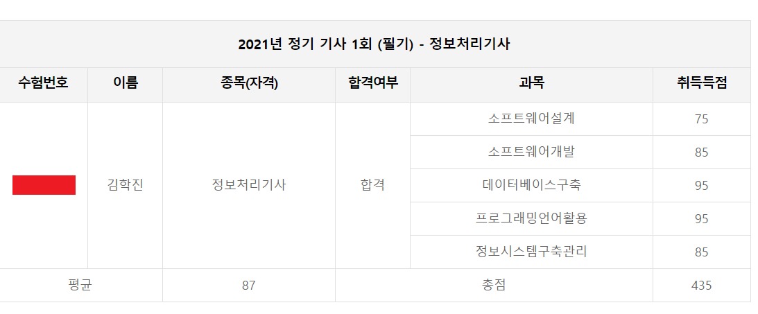 21년 3월 7일 13시에 진행되는 정보처리기사 필기 시험을 보고 왔다. 시험은 2시간 30분동안 진행되며, 13시 30분에 시작해서 16시에 종료된다. 시험이 많이 어렵지는 않아서 술술 풀렸다. 작년 기출문제만 공부했으면 많이 어려웠을지도 모르겠다. 이번년도에는 작년 기출문제에 나왔던 용어의 의미를 묻는 문제가 많았다.