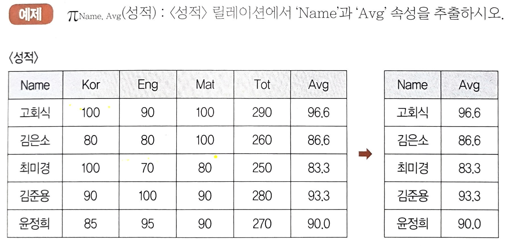 • 중복된 튜플을 제거하고 한 개만 검색, 선택된 속성의 값이 아닌, 튜플 전체를 대상으로 함