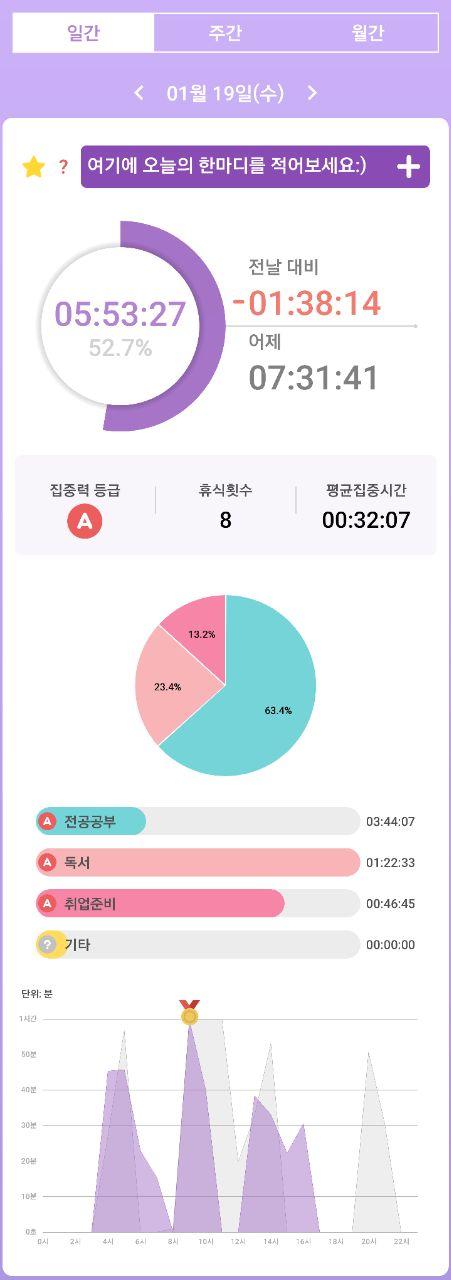 • 열공시간 어플을 통해 시간 사용에 관한 기록을 남겼습니다.
