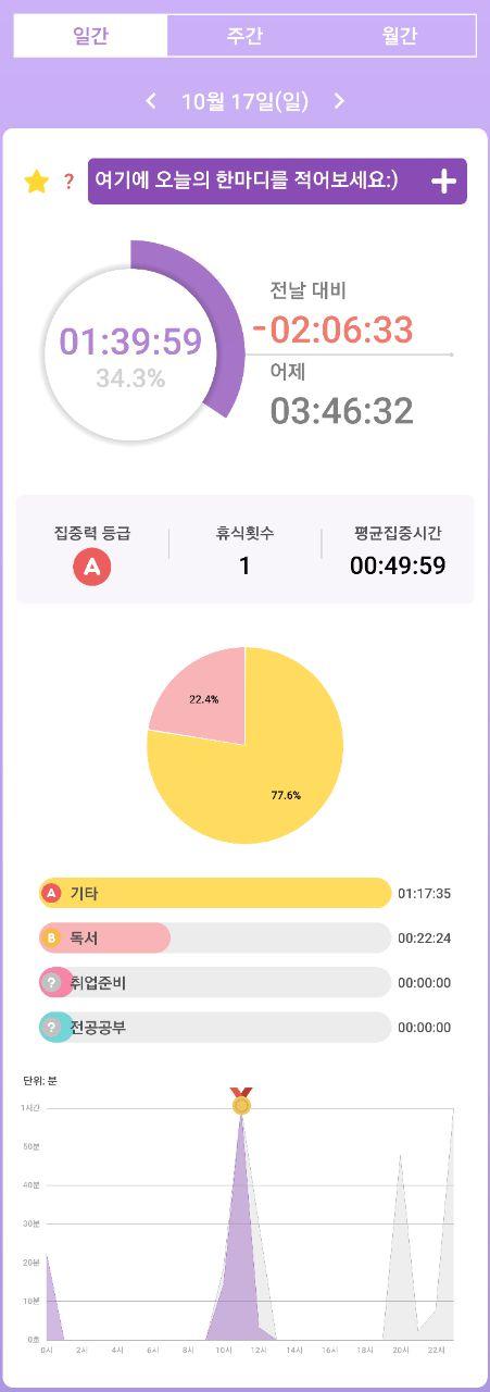 • 열공시간 어플을 통해 시간 사용에 관한 기록을 남겼습니다.