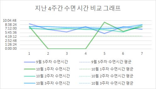 • 지난 4주간 수면 시간 비교 그래프
