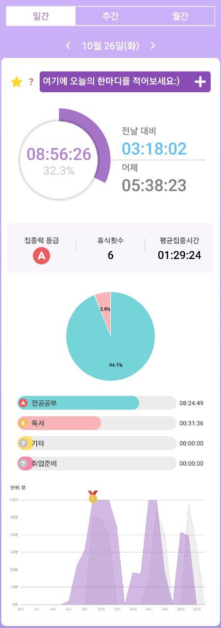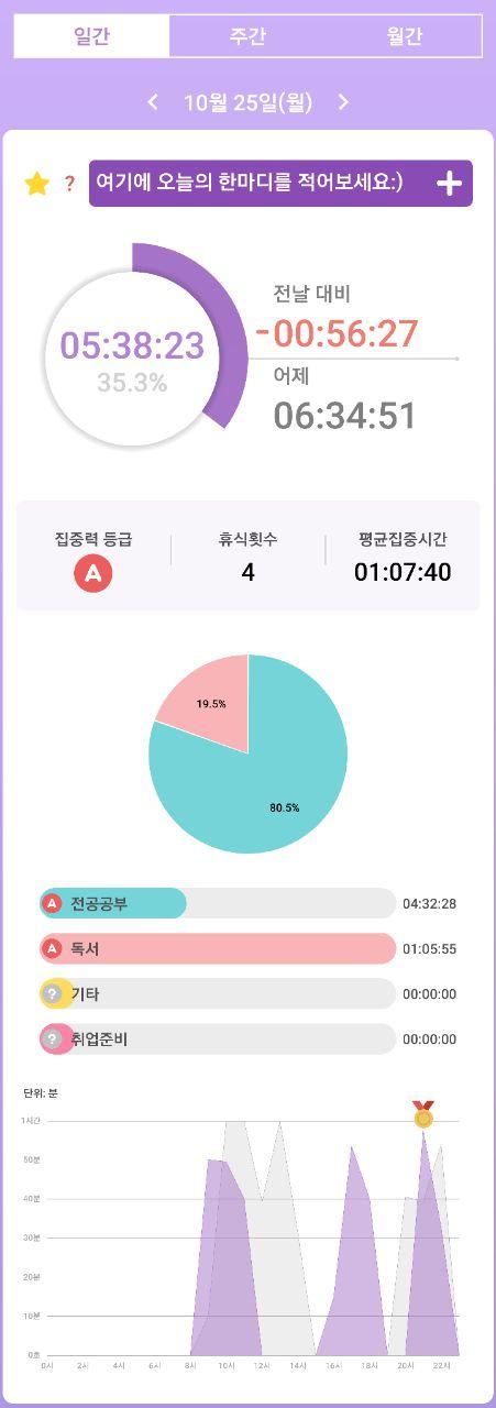 1. 시간 집계- 열공시간 어플을 통해 시간 사용에 관한 기록을 남겼습니다.