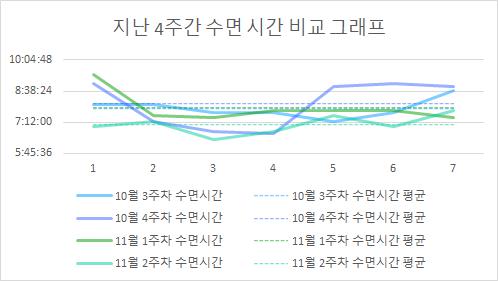 • 지난 4주간 수면 시간 비교 그래프