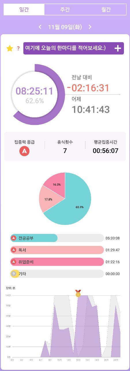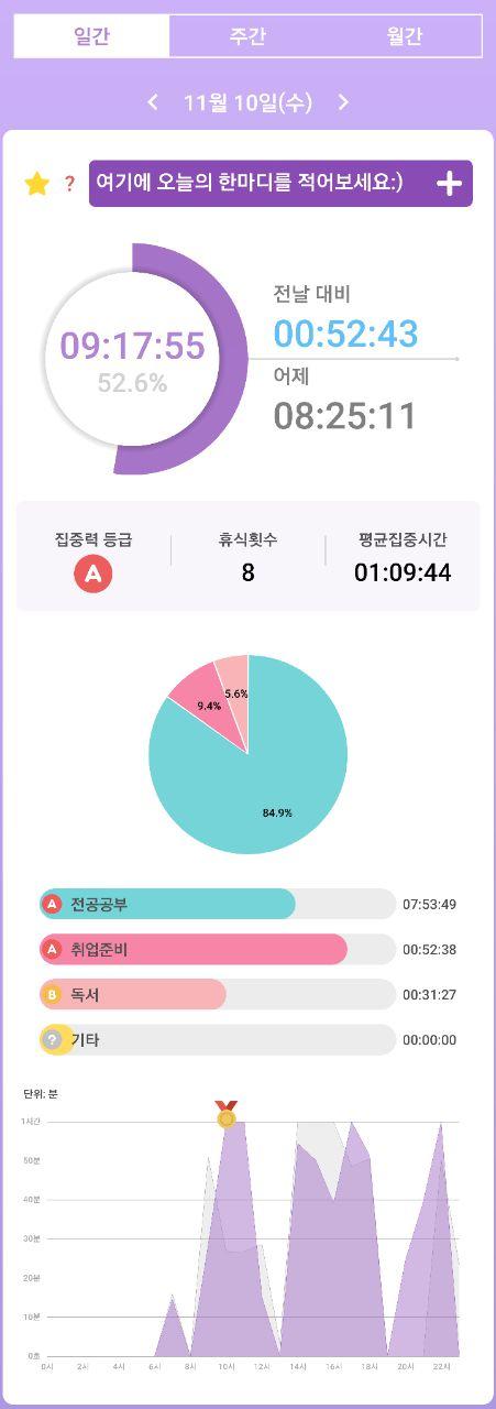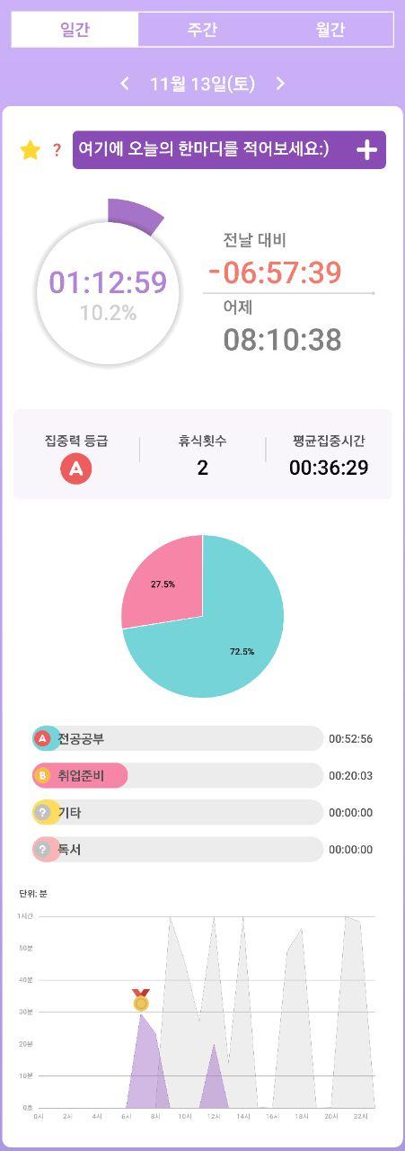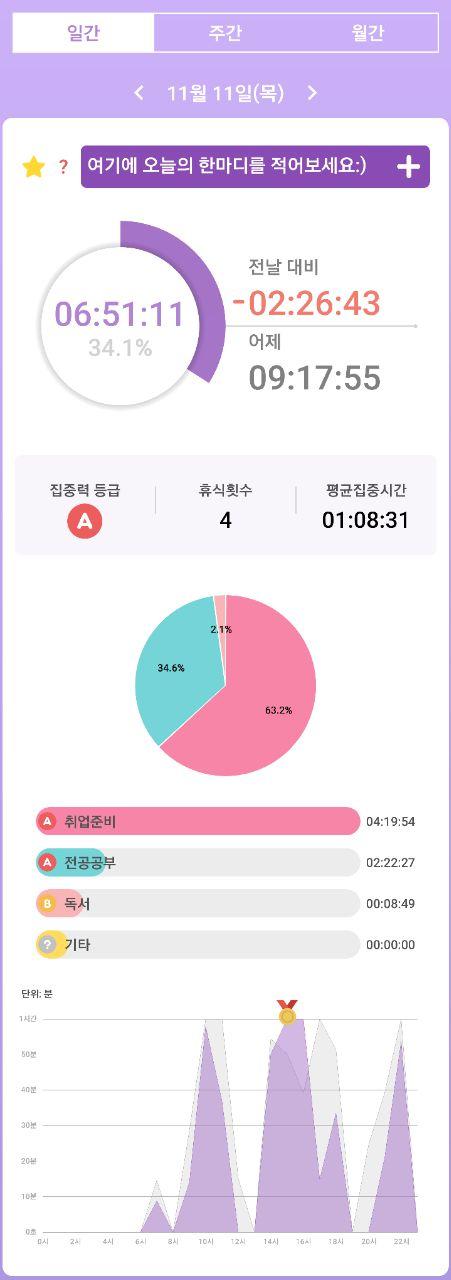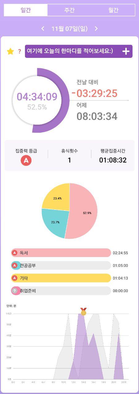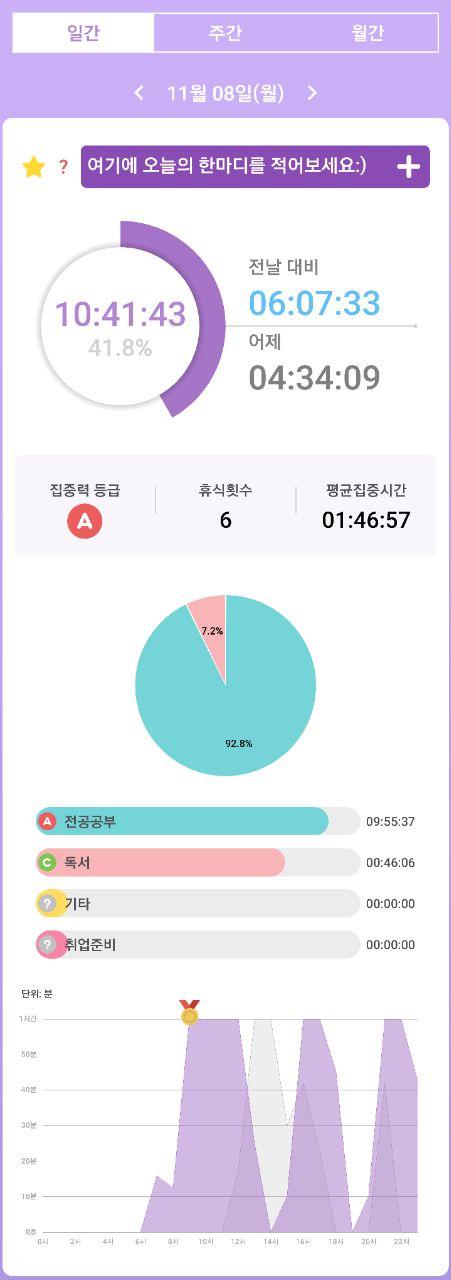 • 열공시간 어플을 통해 시간 사용에 관한 기록을 남겼습니다.