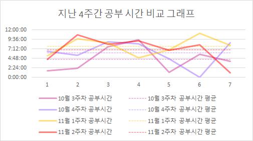 • 지난 4주간 공부 시간 비교 그래프
