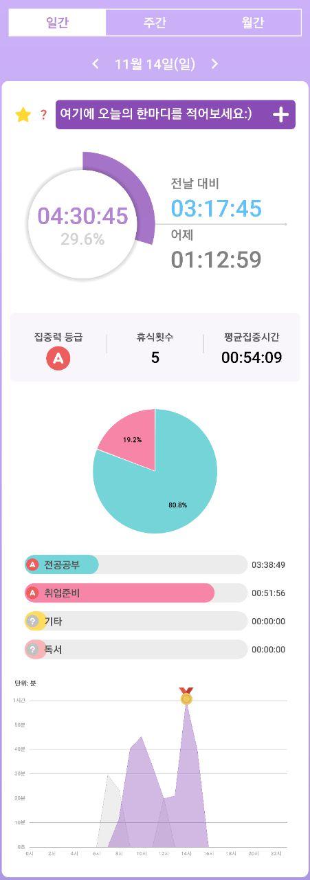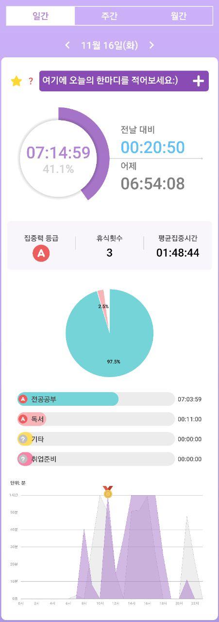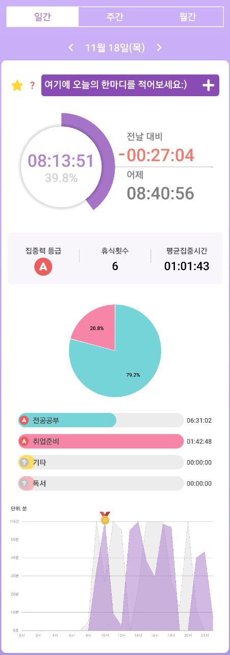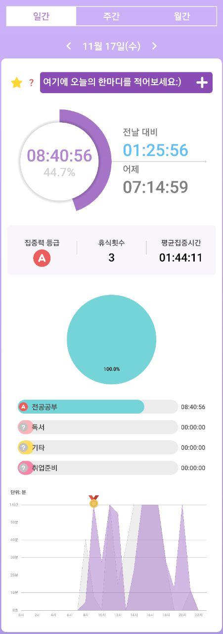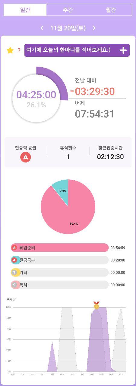 - 열공시간 어플을 통해 시간 사용에 관한 기록을 남겼습니다.