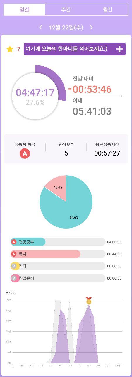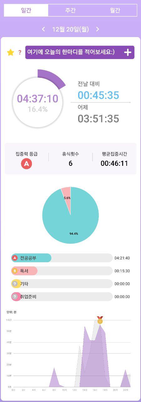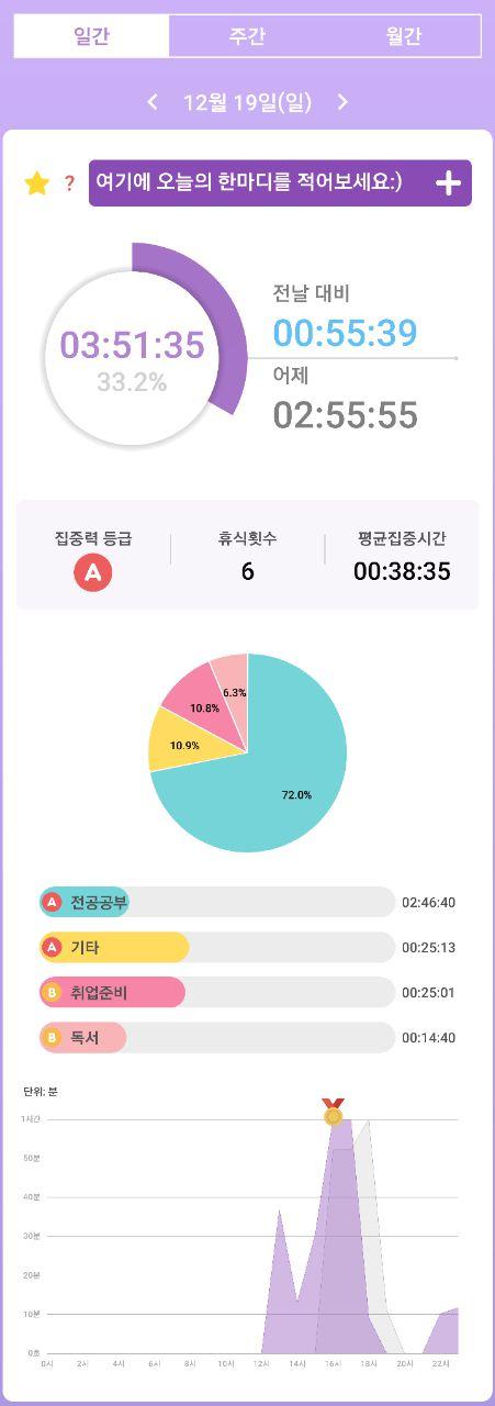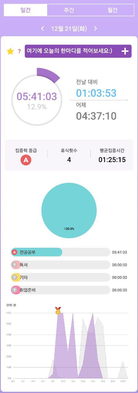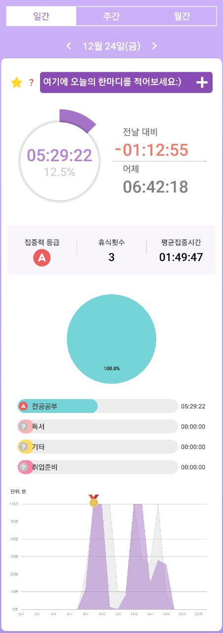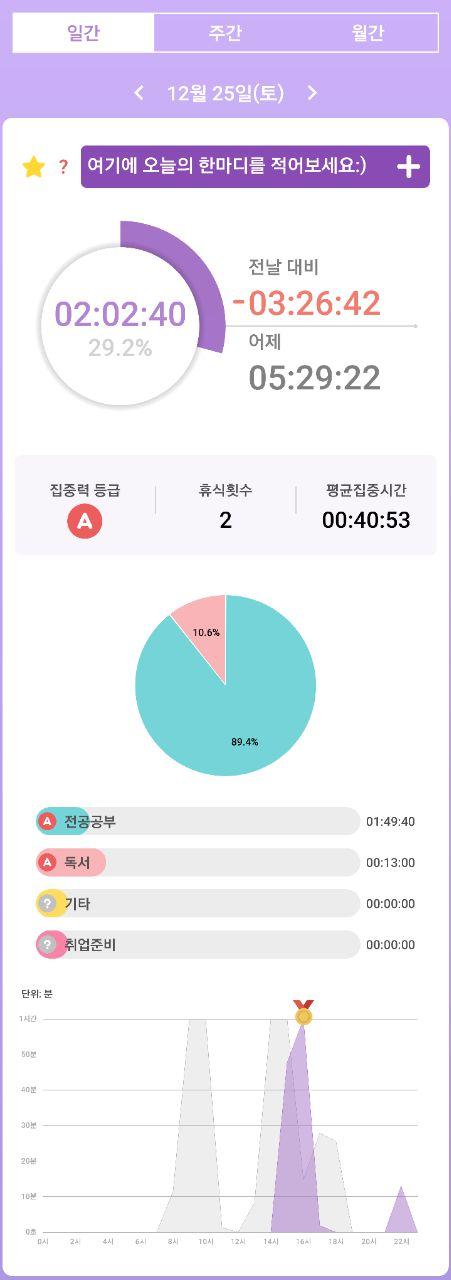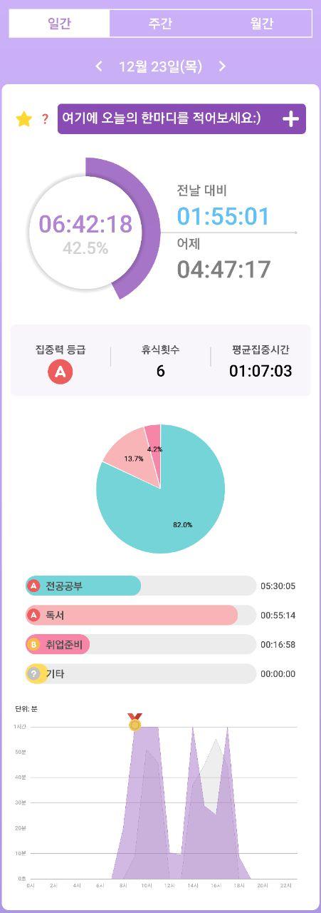 - 열공시간 어플을 통해 시간 사용에 관한 기록을 남겼습니다.