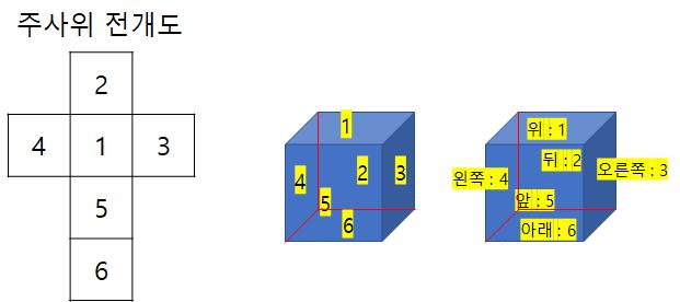 주사위는 아래 모양처럼 생각하면 된다.
