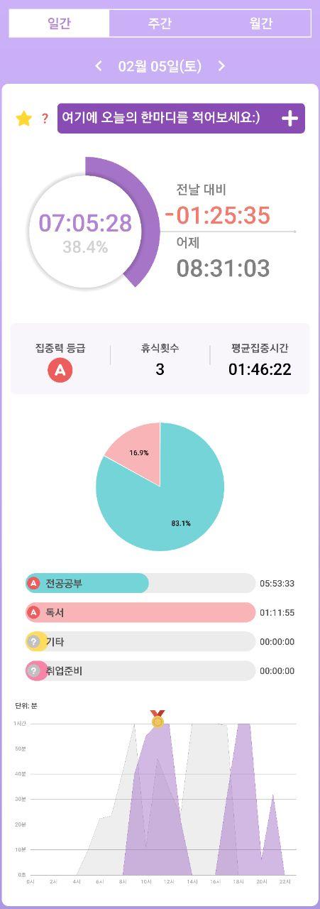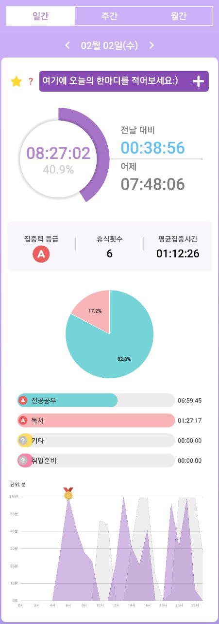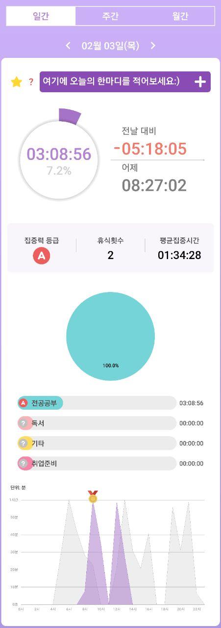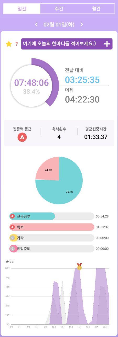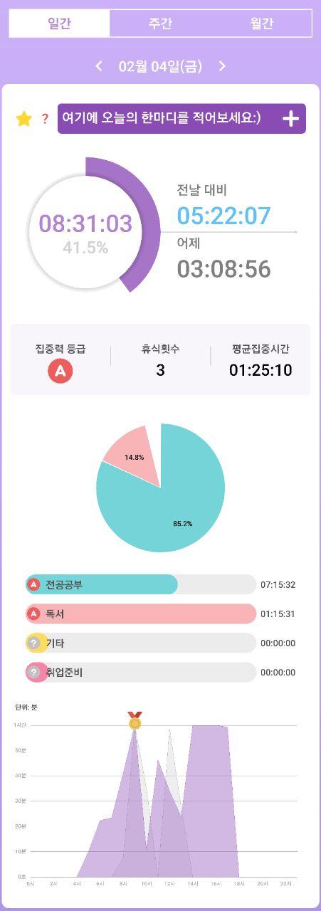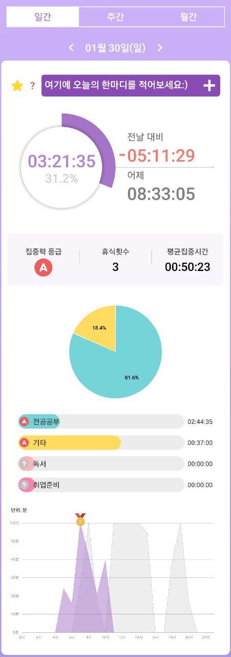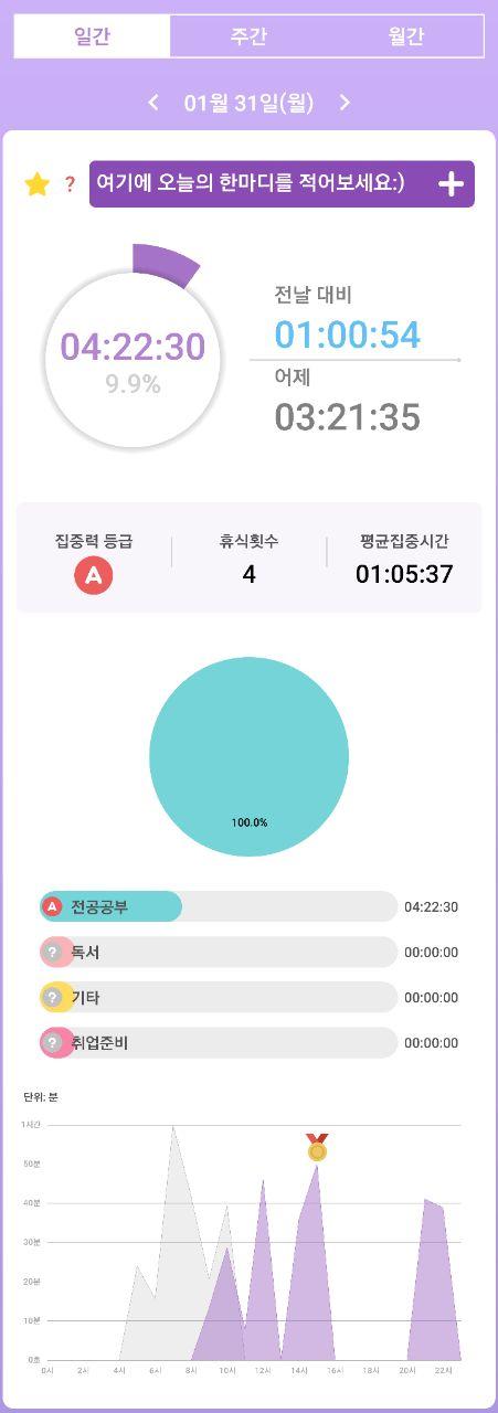 - 열공시간 어플을 통해 시간 사용에 관한 기록을 남겼습니다.
