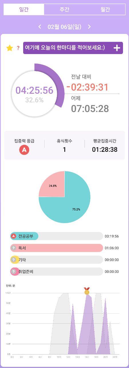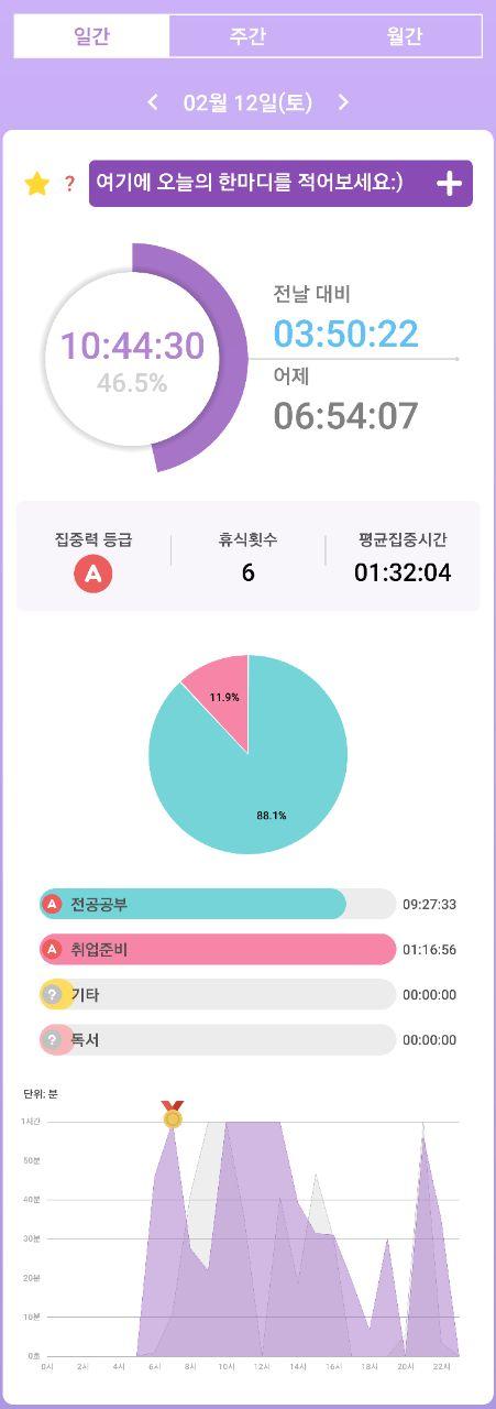 - 열공시간 어플을 통해 시간 사용에 관한 기록을 남겼습니다.