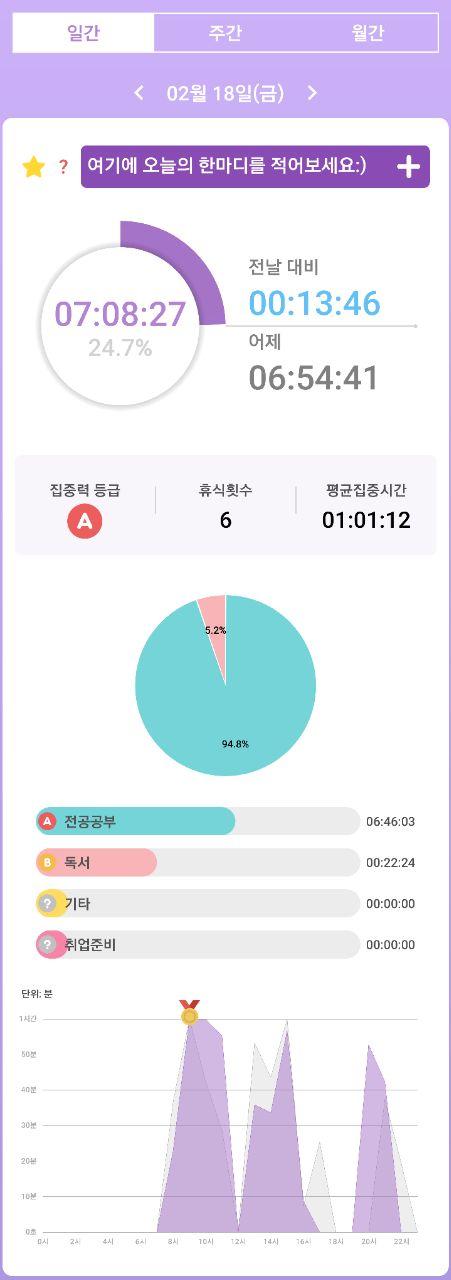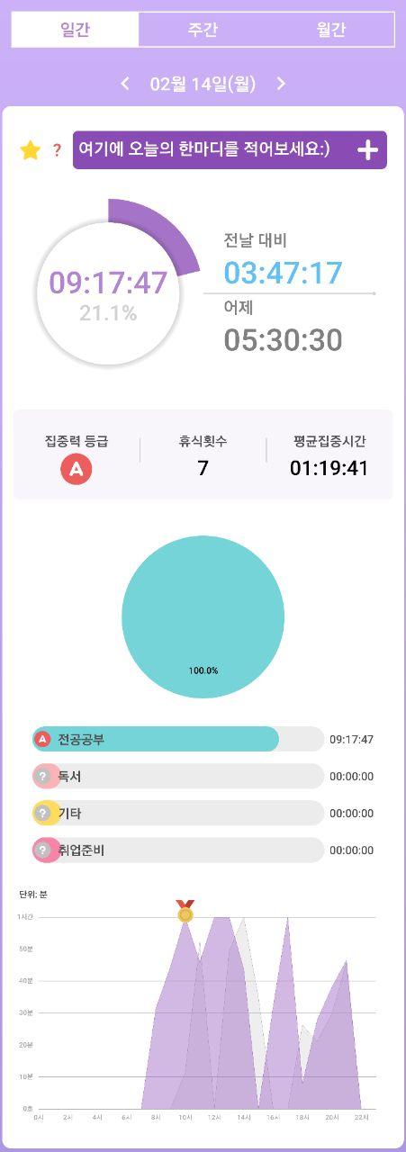 - 열공시간 어플을 통해 시간 사용에 관한 기록을 남겼습니다.