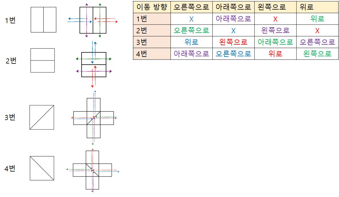 바람은 위 그림처럼 4방향으로 이동할 수 있다.