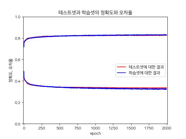1. 정확도와 오차율A. Relu-Relu-SigmoidDropout ⇒ 0.2, 0.4