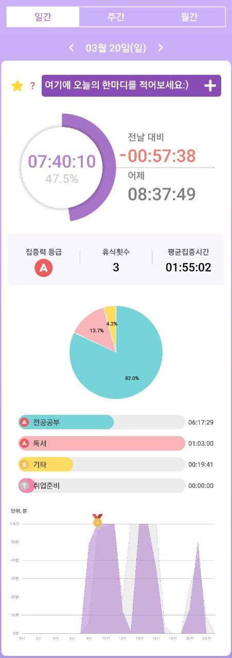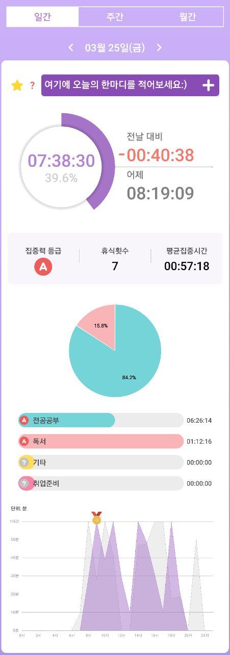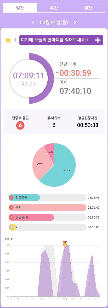 • 열공시간 어플을 통해 시간 사용에 관한 기록을 남겼습니다.
