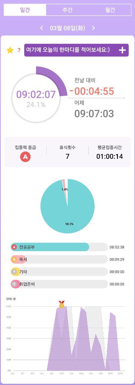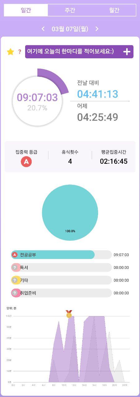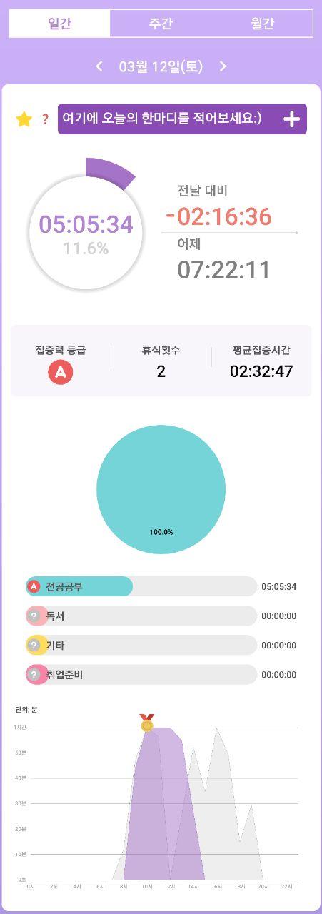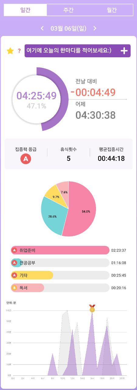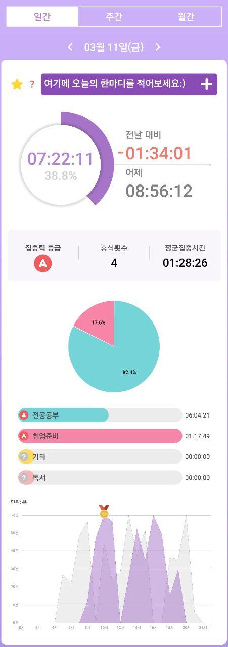 - 열공시간 어플을 통해 시간 사용에 관한 기록을 남겼습니다.
