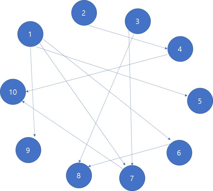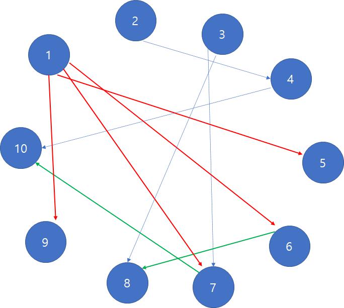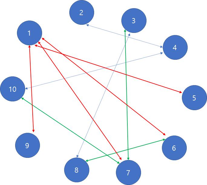 하지만 친구는 양방향으로 성립되기 때문에 7의 친구는 10과 3이 존재해야 한다.