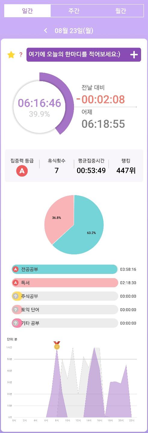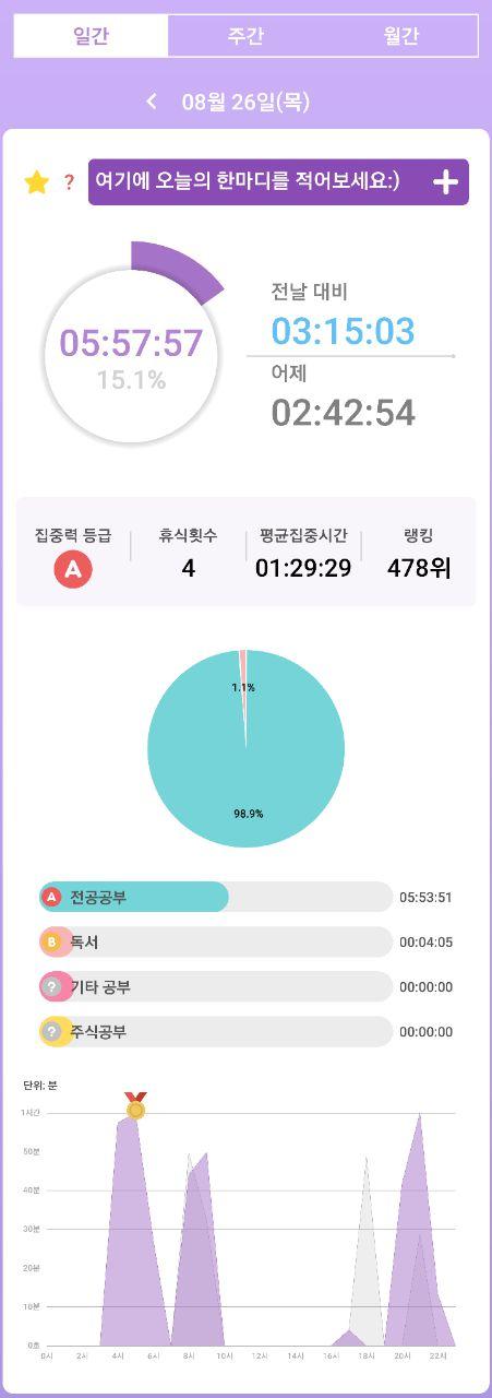 자발적 공부시간만 집계하였습니다.