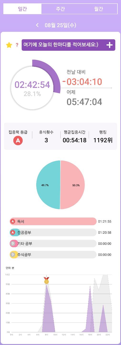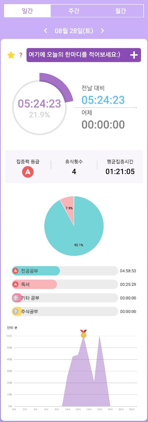 1. 시간 집계- 열공시간 어플을 통해 시간 사용에 관한 기록을 남겼습니다.
