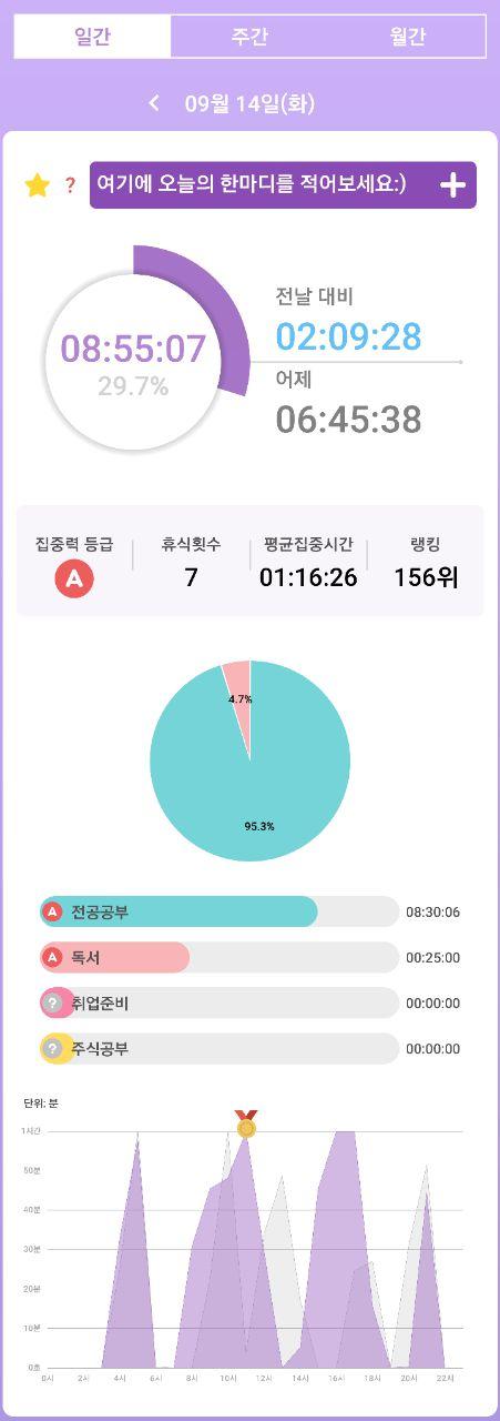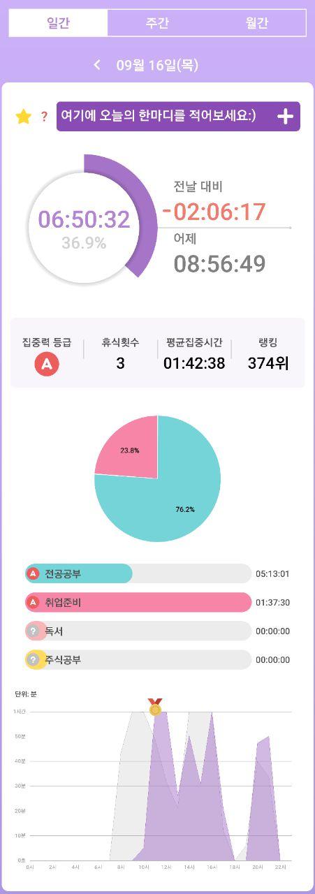 - 시간 집계는 수업을 제외한 자발적 공부시간만 집계하였습니다.