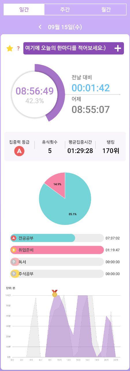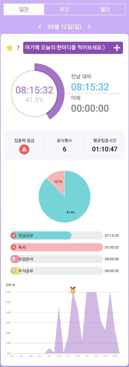 1. 시간 집계- 열공시간 어플을 통해 시간 사용에 관한 기록을 남겼습니다.
