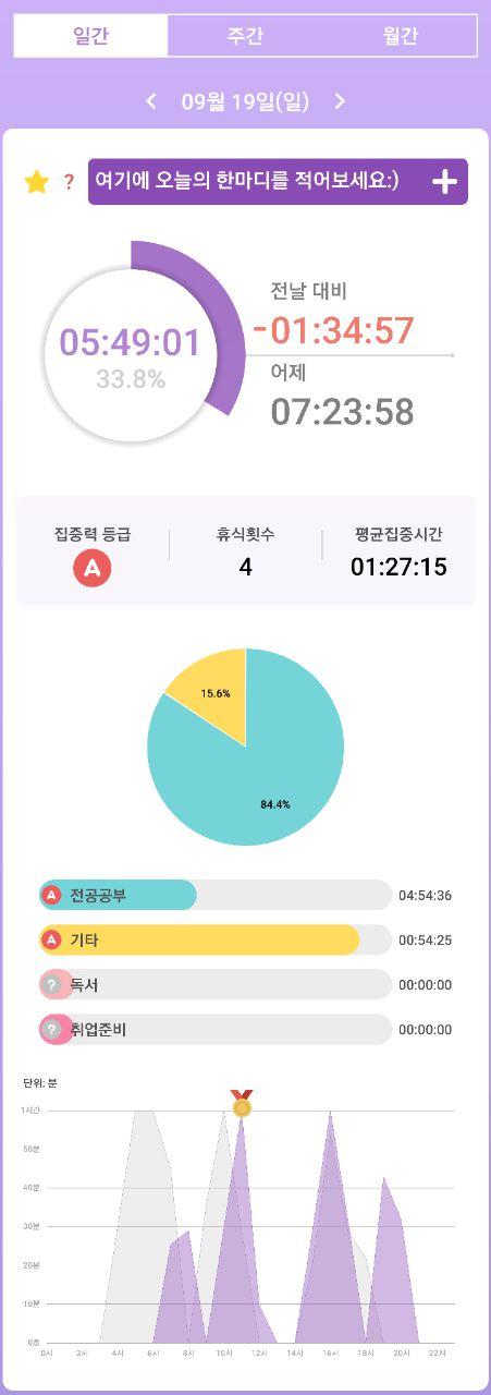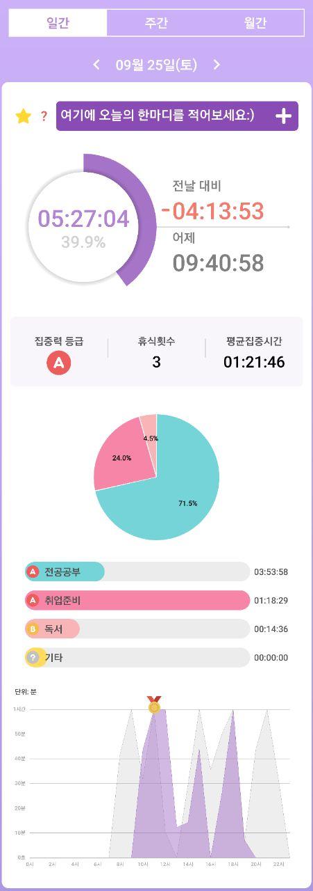 1. 시간 집계- 열공시간 어플을 통해 시간 사용에 관한 기록을 남겼습니다.