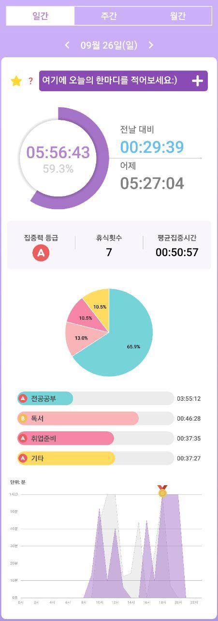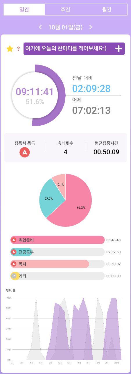1. 시간 집계- 열공시간 어플을 통해 시간 사용에 관한 기록을 남겼습니다.