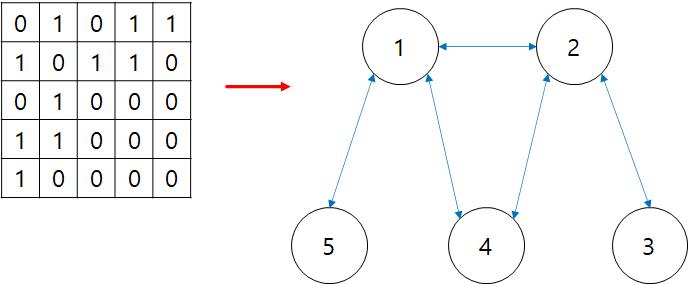 • 다음 N개의 줄에 걸쳐 N * N 행렬을 통해 임의의 두 여행지가 서로 연결되어 있는지의 여부가 주어진다. 그 값이 1이라면 서로 연결되었다는 의미이며, 0이라면 서로 연결되어 있지 않다는 의미이다.