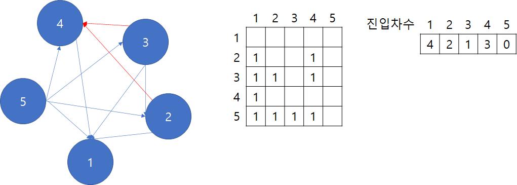 방향 그래프에서 방향을 바꾸면, 진입차수도 변경해주어야한다.